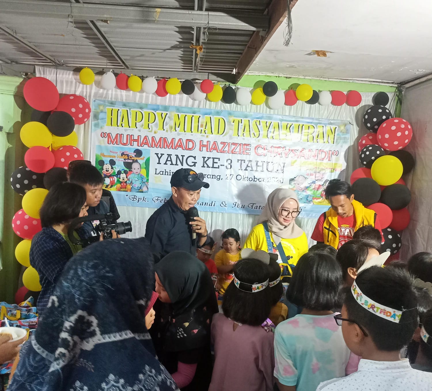 Alhamdulillah “terima kasih Untuk Kedua orang tua,Keluarga dan juga teman Deket, saya beserta istri dan keluarga besar berbahagia karena dikasih waktu, kesempatan sama Allah untuk bisa menggelar acara tasyakuran hari ini, anak tercinta kami Muhammad Hazizie Chrysandi. alhamdulillah putra kami pada tanggal 27 Oktober 2023 kemarin bertambah usia genap tiga (3) Tahun. karena waktu yang sangat padat, waktu itu jadi baru sekarang nih bisa bikin acara Tasyakuran Hari Ulang Tahun,” ujar Feby Chrysandi, saat ditemui di Lokasi Kediamannya,Kampung Sepatan RT.03/04 Kelurahan Sepatan Kecamatan Sepatan Minggu (19/11/2023).