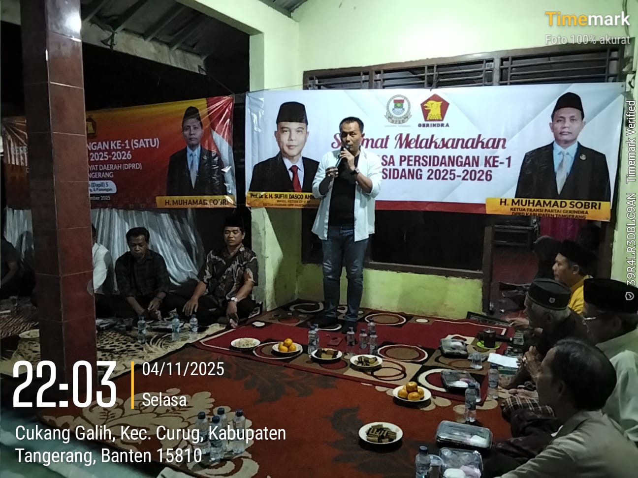 “Kita sudah usulkan pembangunan tandon di area sekitar Paramount untuk menampung air hujan agar tidak meluap ke permukiman warga. Tapi kalau setelah itu masih terjadi banjir, tolong Pak RT tetap lapor agar bisa segera kami tindaklanjuti,” ujar H. Muhammad Sobri di sela kegiatan reses yang berlangsung di Kampung Soka RT 01 RW 01, Desa Cukanggalih, Kecamatan Curug, Selasa (4/11/2025).