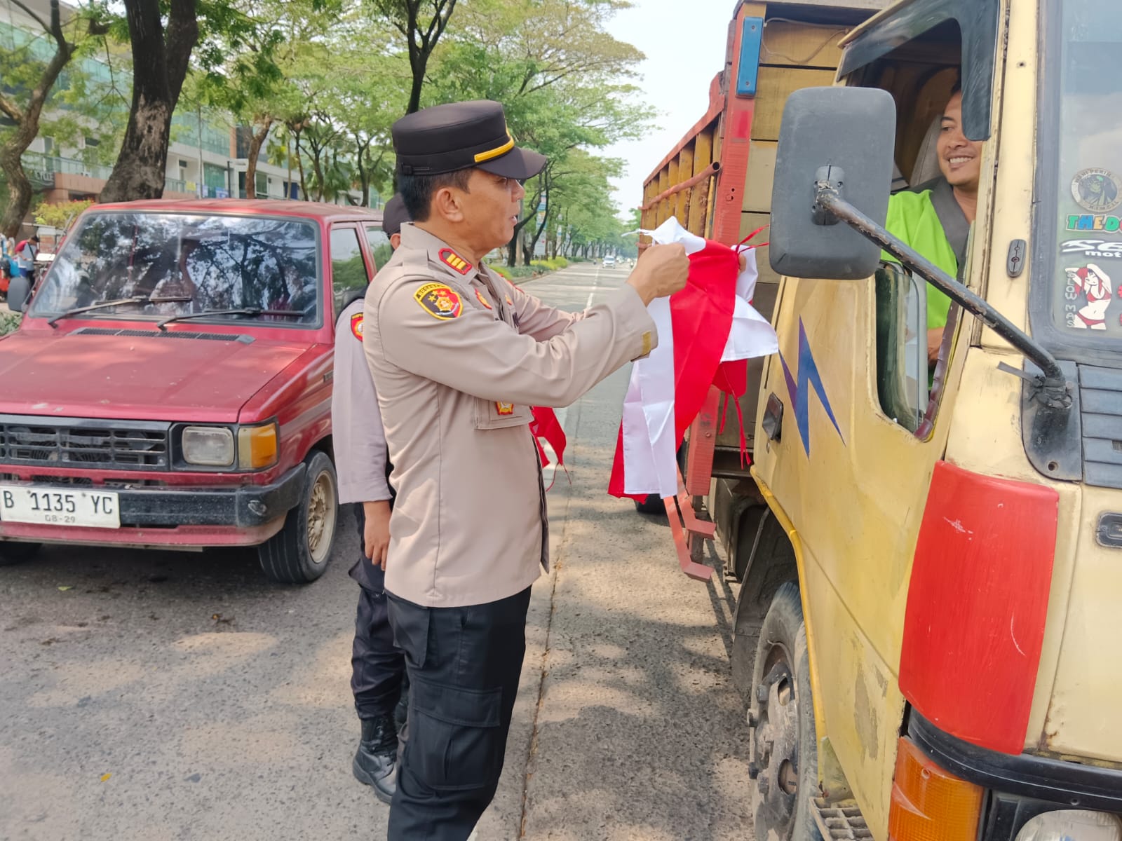 Kab Tangerang – Dalam rangka menyemarakkan HUT ke-80 Kemerdekaan Republik Indonesia Tahun 2025 yang mengusung tema “Indonesia Maju, Indonesia Bersatu”, Polsek Cisauk membagikan 50 bendera Merah Putih kepada para pengendara kendaraan bermotor di sejumlah titik strategis kab Tangerang.