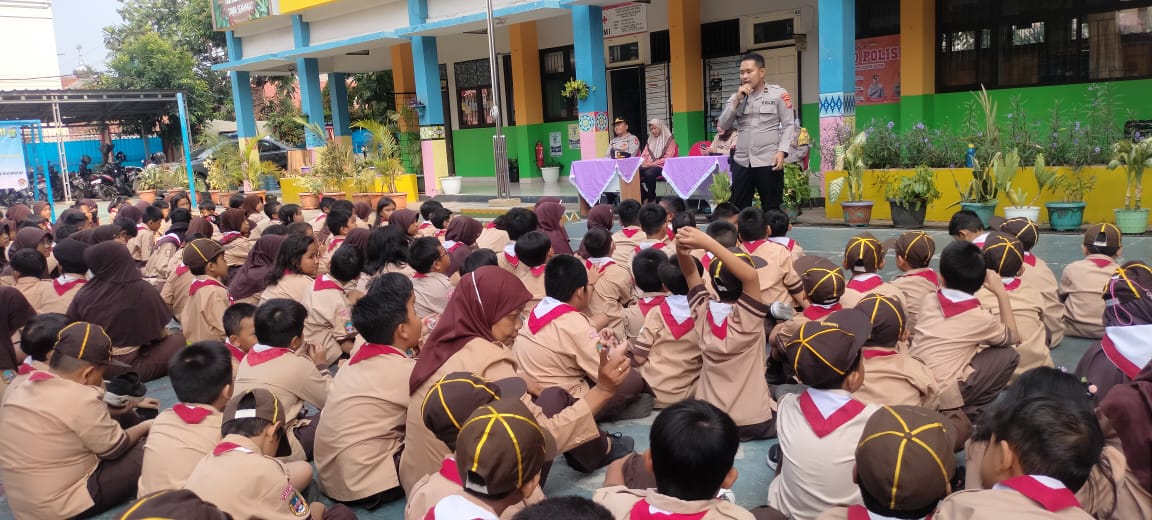 Materi Edukasi penggunaan Hp. dan sarana Medsos, Cegah Bullying di lingkungan sekolah SD dan Saksi bagi pelajar yang melakukan pelanggaran Hukum diantaranya Buliying, Tawuran, Penyalahgunaan Norkotika/Narkoba, Pencurian dan Pelanggaran Lalu Lintas, kecenderungan sarana IG dijadikan sarana pertemuan hingga berujung kejadian tawuran.