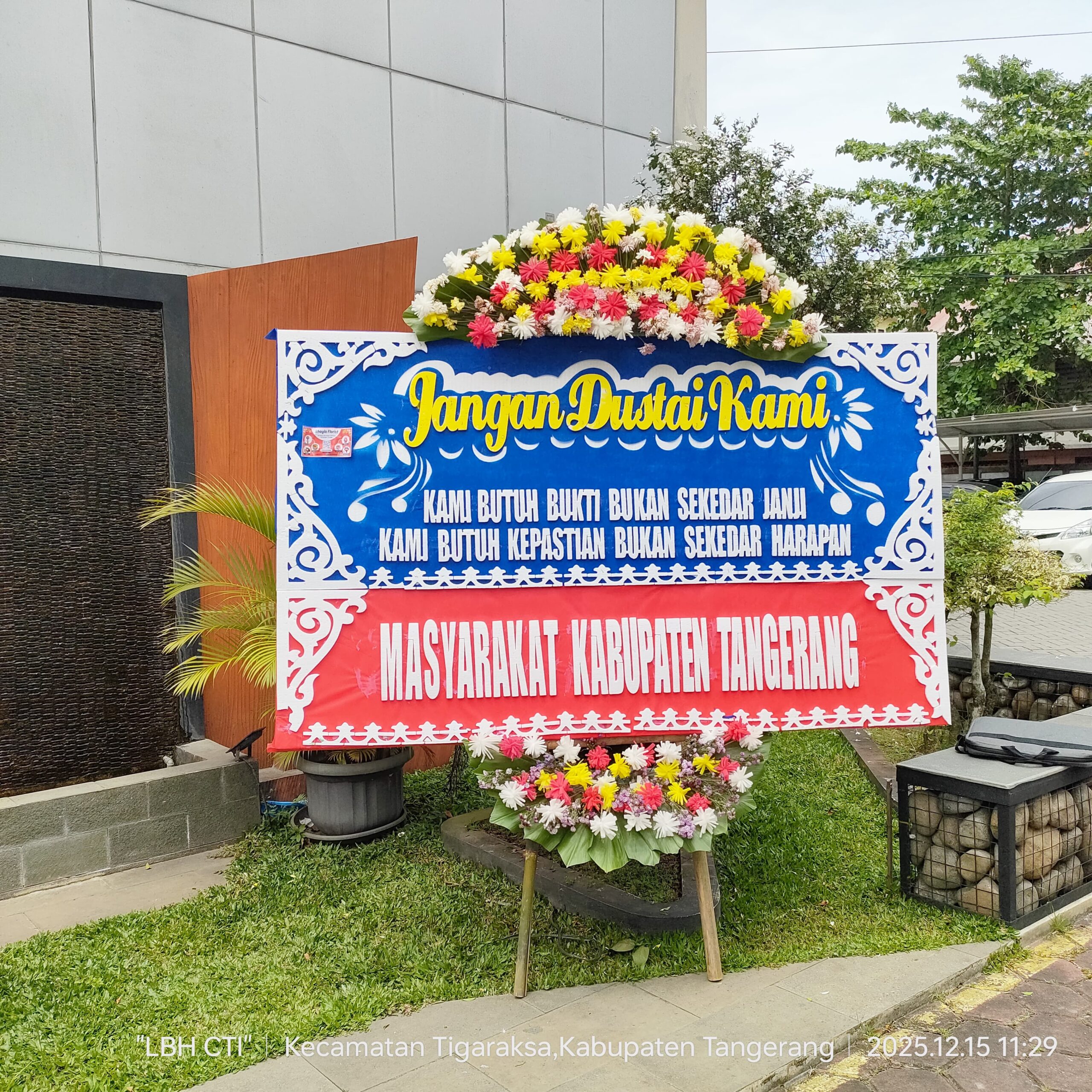 Kab. Tangerang | Wolindonesia.id – Sejumlah elemen masyarakat menyampaikan kekecewaan terhadap pelayanan ATR/BPN Kabupaten Tangerang dengan mengirimkan karangan bunga berisi kritik, Senin (15/12/2025).