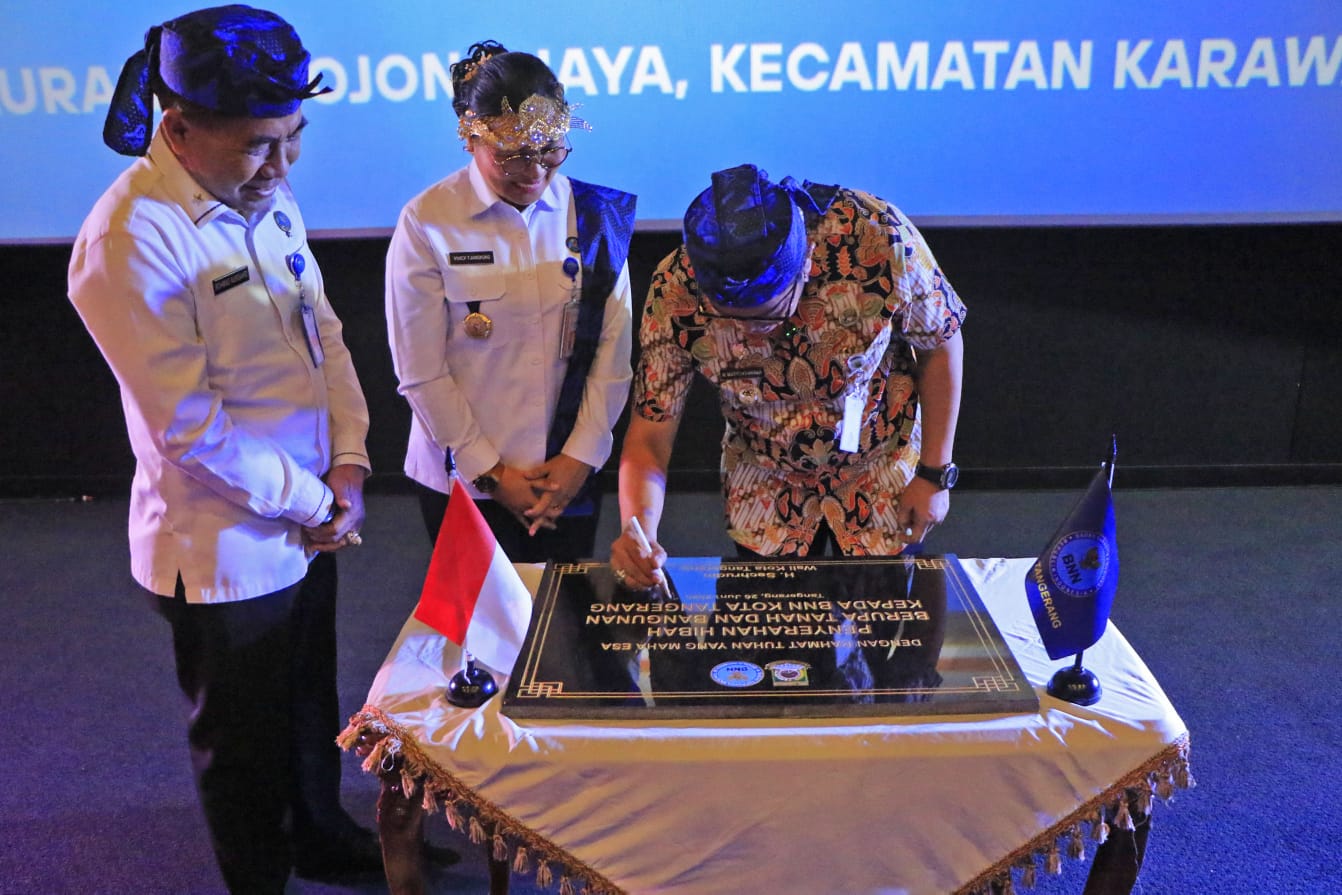 Tangerang – Memperingati Hari Anti Narkotika Internasional (HANI) 2025, Pemerintah Kota (Pemkot) Tangerang menegaskan keseriusannya dalam perang terhadap Narkotika, Psikotropika, dan Bahan Adiktif lainnya (Narkoba), dengan menyerahkan hibah berupa tanah dan bangunan untuk operasional Kantor BNN Kota Tangerang. Proses penyerahan dilakukan oleh Wakil Wali Kota Tangerang, H. Maryono Hasan, kepada Kepala BNN, Josephien Vivick Tjangkung, sebagai bentuk sinergi kelembagaan yang kuat.