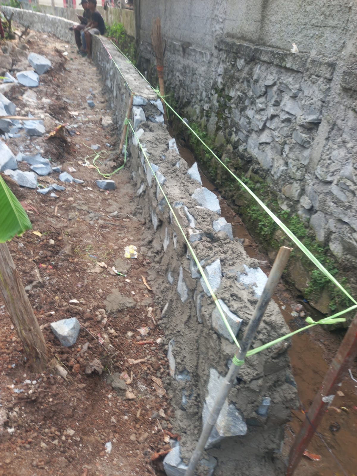 Lebih parah lagi, adukan semen yang digunakan tidak sesuai standar perbandingan bahan. Komposisi pasir dan semen tampak tidak seimbang, sehingga adukan terlihat rapuh dan tidak mampu merekatkan batu dengan baik. Kondisi ini semakin memperburuk kualitas bangunan yang seharusnya mampu bertahan lama.