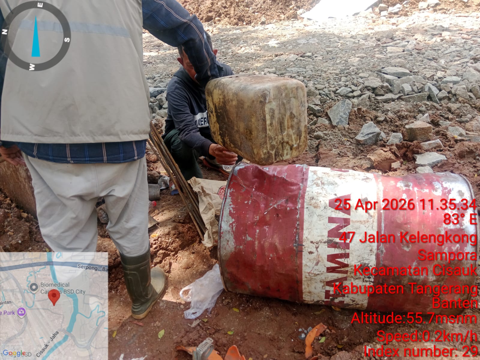 Kab. Tangerang | wolindonesia.id. Proyek-proyek besar dilakukan banyak dugaan penggunaaan BBM bersubsidi temuan wartawan kali ini pada proyek BSD di D HUBB Cisauk, awak media melihat ada 2 (dua) Alat Berat yang sedang beroperasi dilokasi tersebut, Kami pun melihat ada 1 tong berisikan Solar dan bertuliskan pertamina tergeletak diatas tanah. Minggu (26/04/26).