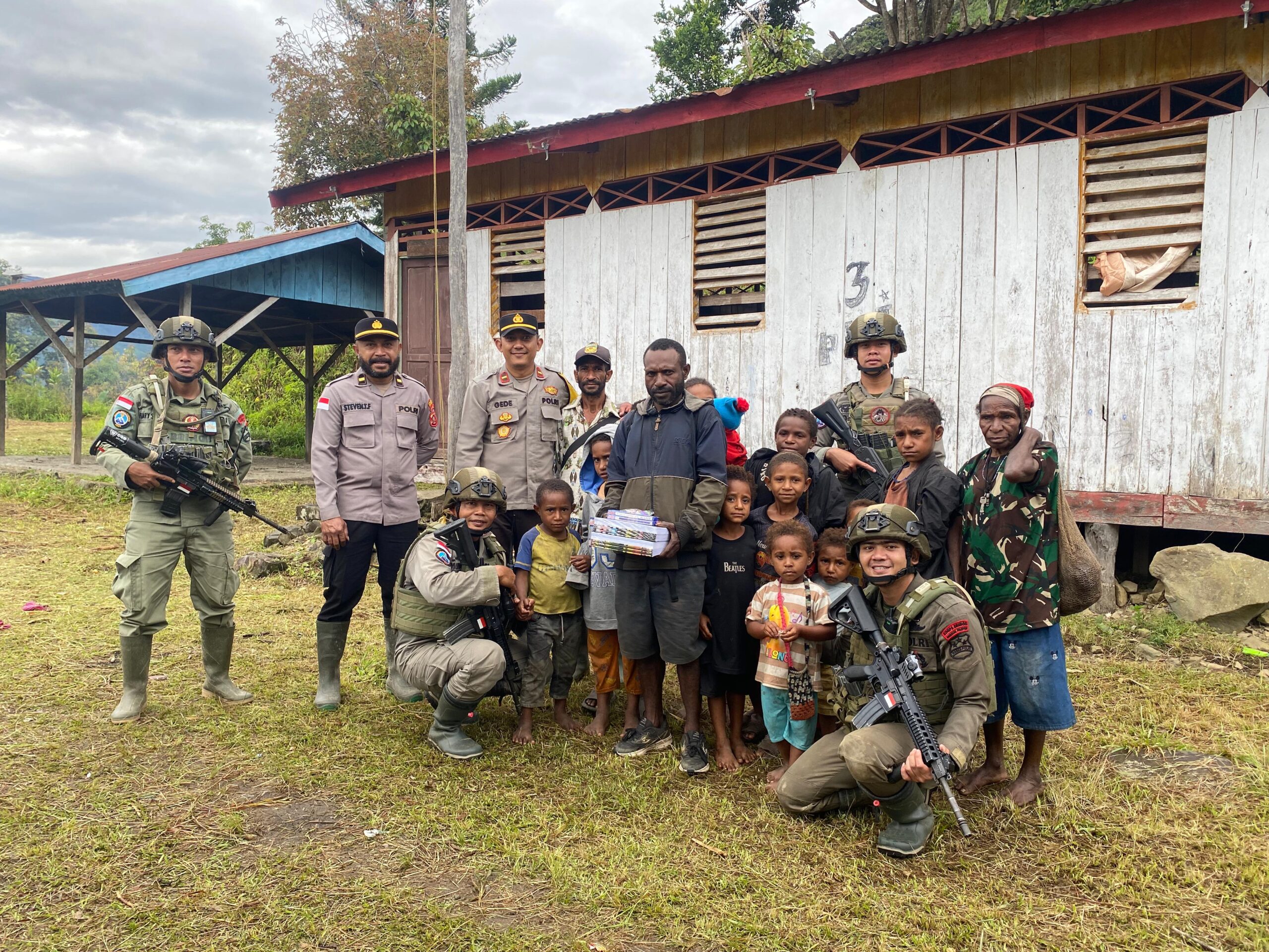 Kegiatan ini dipimpin langsung oleh IPDA Munawar dan melibatkan 12 personel Satgas Ops Damai Cartenz bersama 4 personel dari Polsek Kiwirok. Dalam kunjungan tersebut, tim Satgas menyerahkan bantuan bibit tanaman untuk masyarakat serta alat tulis bagi anak-anak sekolah di Kampung Apom.