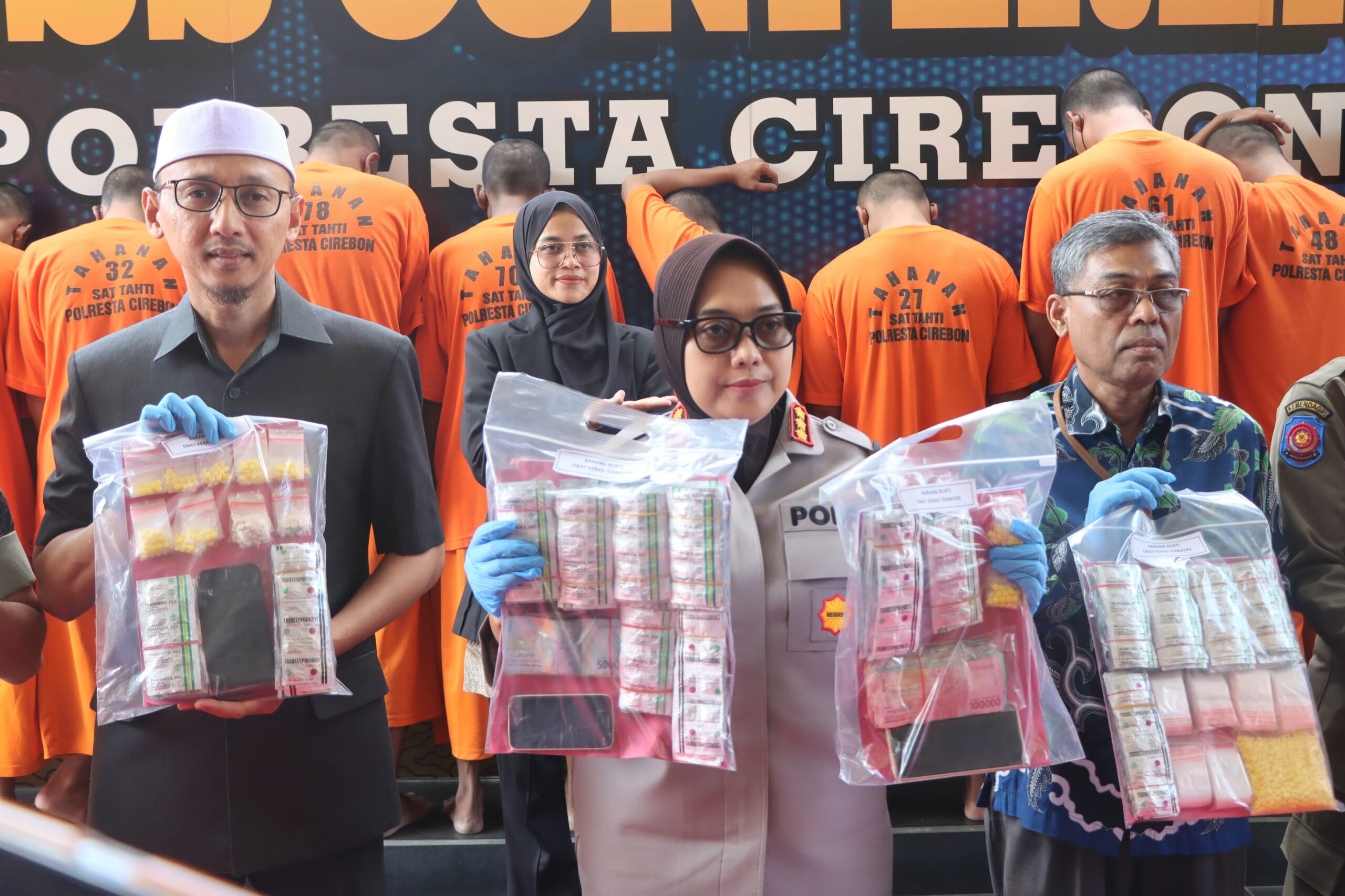 Selain itu, jumlah barang bukti yang berhasil diamankan, di antaranya, 19,57 gram sabu-sabu, dan 5.177 butir OKT. Kasus-kasus tersebut diungkap di wilayah Kecamatan Kedawung, Plumbon, Sumber, Gebang, Pabedilan, Mundu, Weru Karangwareng, Karangsembung, Gegesik, dan Harjamukti serta Kesambi, Kota Cirebon.