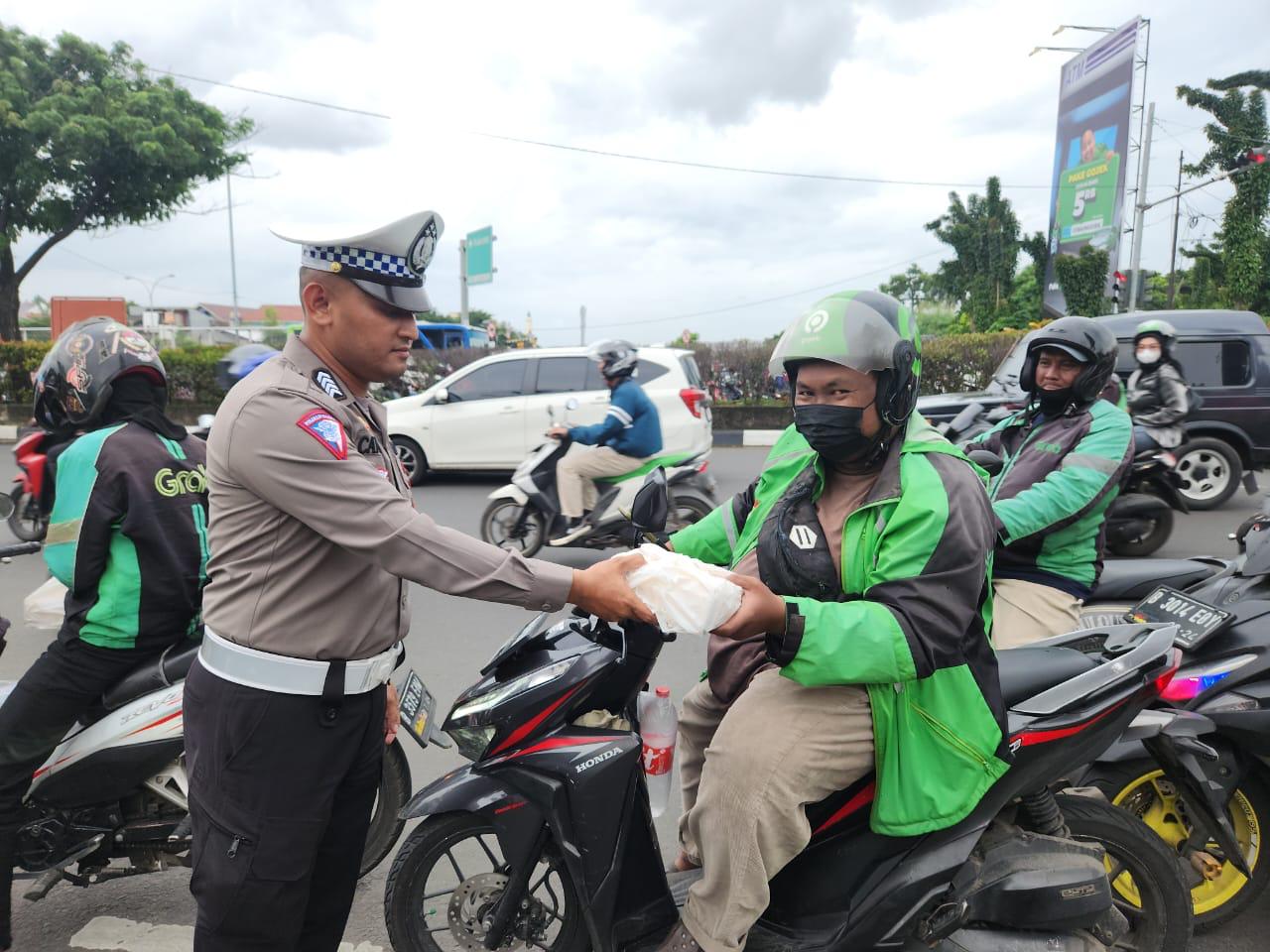 Aksi sosial berbagi takjil yang akan rutin dilaksanakan setiap hari Jumat sembari memberi imbauan tatib lalulintas yang dilaksanakan Satlantas Polres Metro Depok di lampu merah Jl. Margonda Raya.
