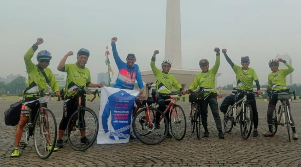 Wolindonesia.id, JAKARTA | Mantan wartawan senior Jawa Pos (JP), Abdul Muis berusia 60 tahun, Gowes Surabaya – Jakarta (800 Km). Setelah lima hari menempuh perjalanan, akhirnya mencapai finish di Lapangan Monas, Kamis siang (30/11/2023).