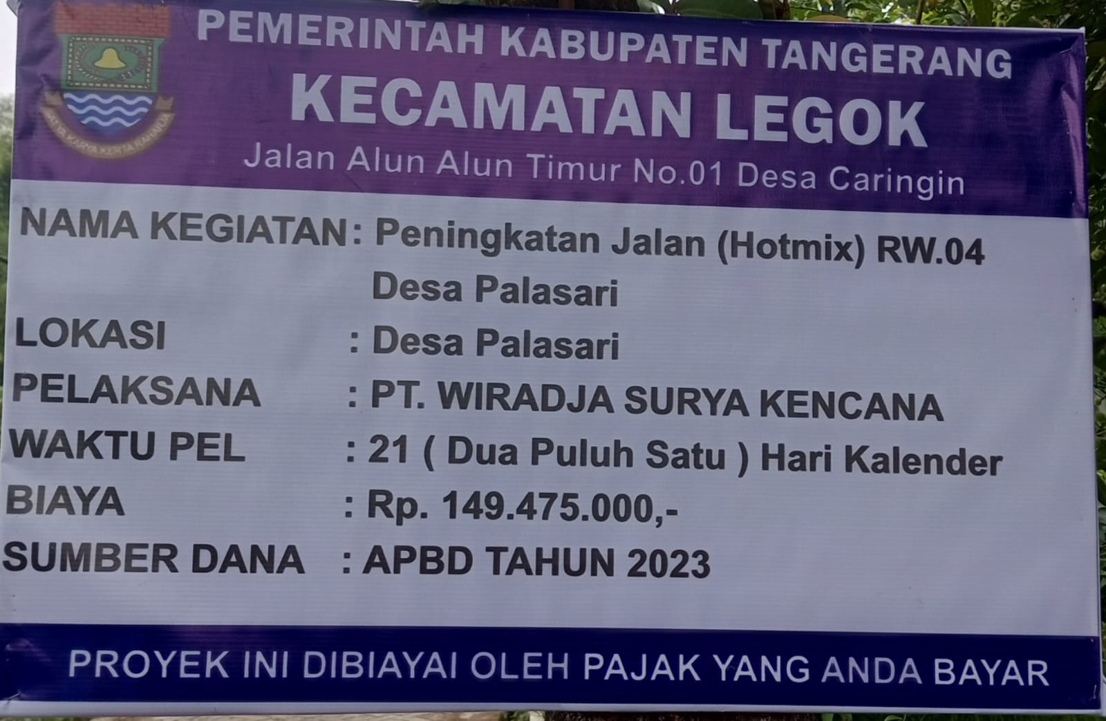 struktur peningkatan Hotmix jalan Palasari Kecamatan Legok, Kabupaten Tangerang yang mendapat Apresiasi langsung dari sejumlah Masyarakat. Kamis 23/11/2023.